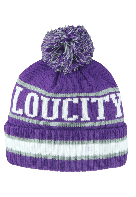 LouCity Checkerboard Punch Pom Beanie - Purple