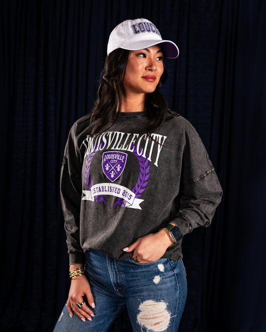 LouCity Women's Mineral Wash Big Long Sleeve T-shirt - Gray