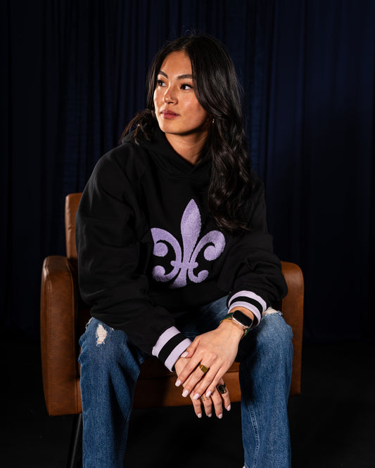 Racing Terry Fleur De Lis Oversized Hooded Sweatshirt - Black