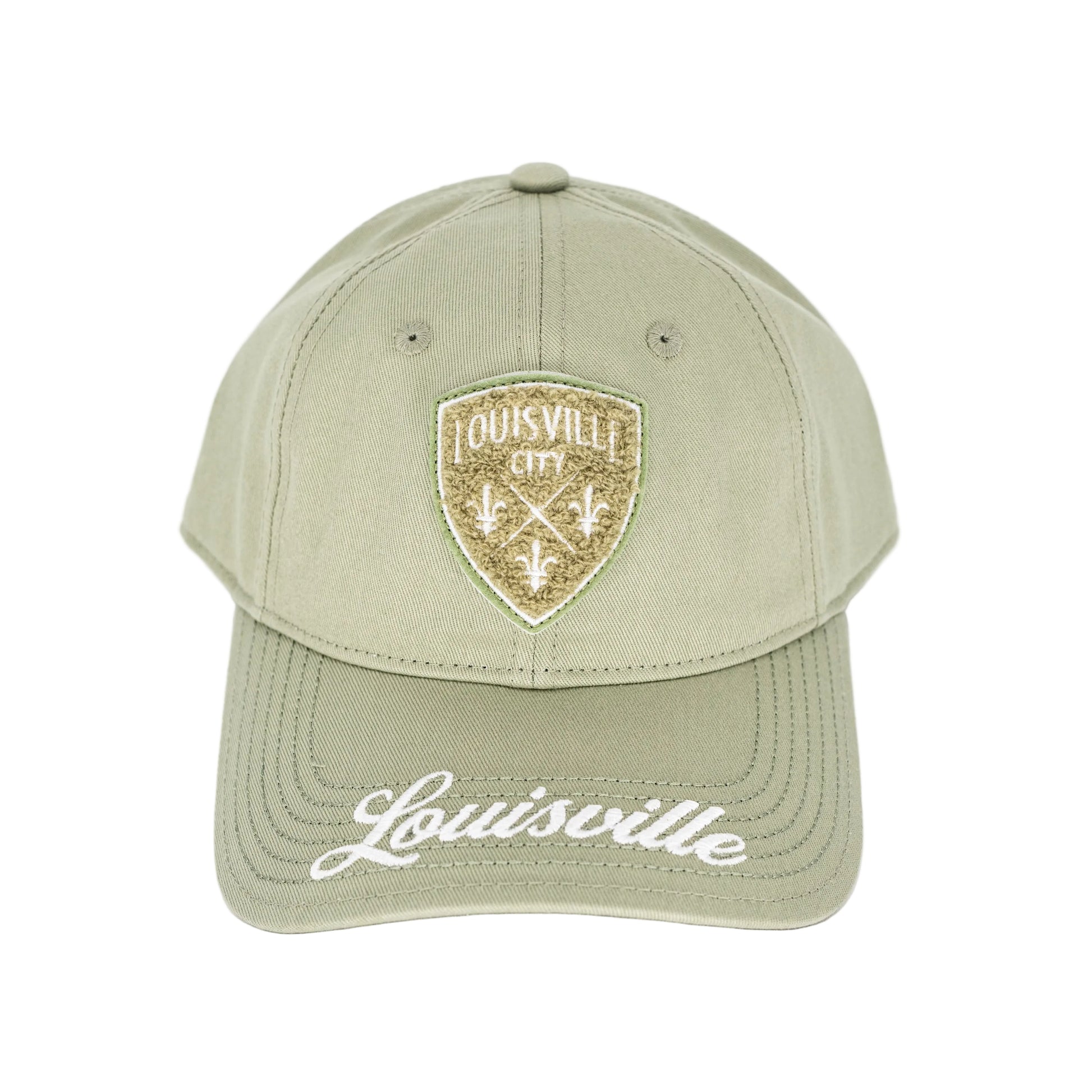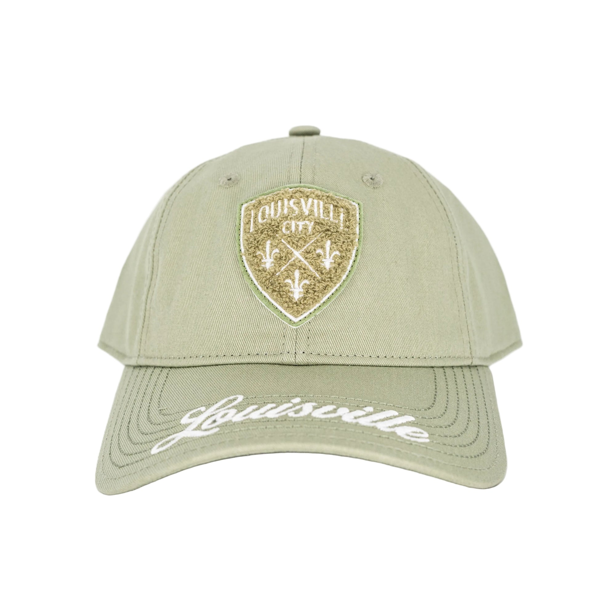 This premium LouCity hat features chenille on felt team logo and embroidered bill. The mineral color is fresh for spring. Make sure to pair it with the Duke tee or Ellington crewneck in mineral from this collection for the perfect fit for everyday or at the game.