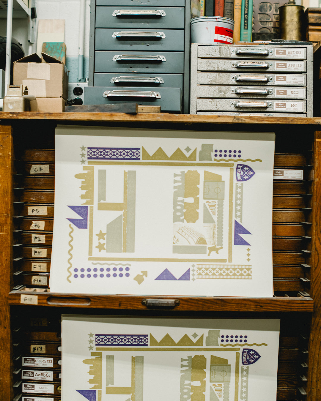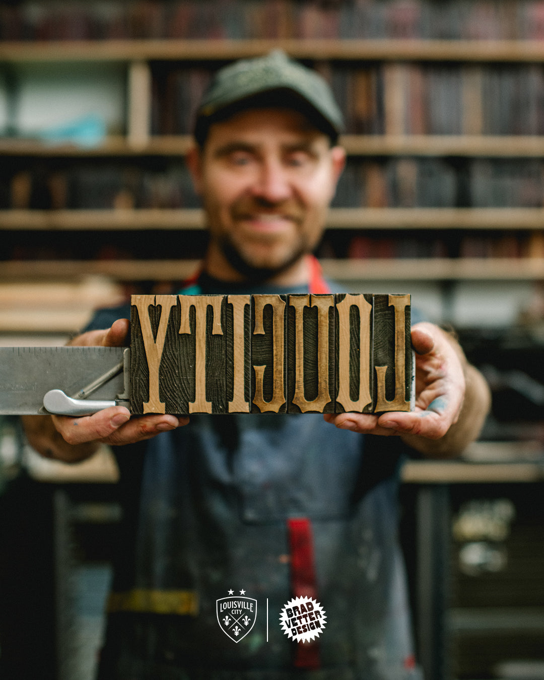 Brad Vetter is a designer, letterpress printer, artist, and educator currently based in Louisville, KY. Brad’s posters are created with a combination of antique type/presses and a laser engraver. We are thrilled to introduce this special edition print to our Louisville City FC fans. Take note of the subtle details include the two gold stars celebrating our back-to-back championship victories, 3 stars pointing to a future victory, and 11 diamonds for our starting players.