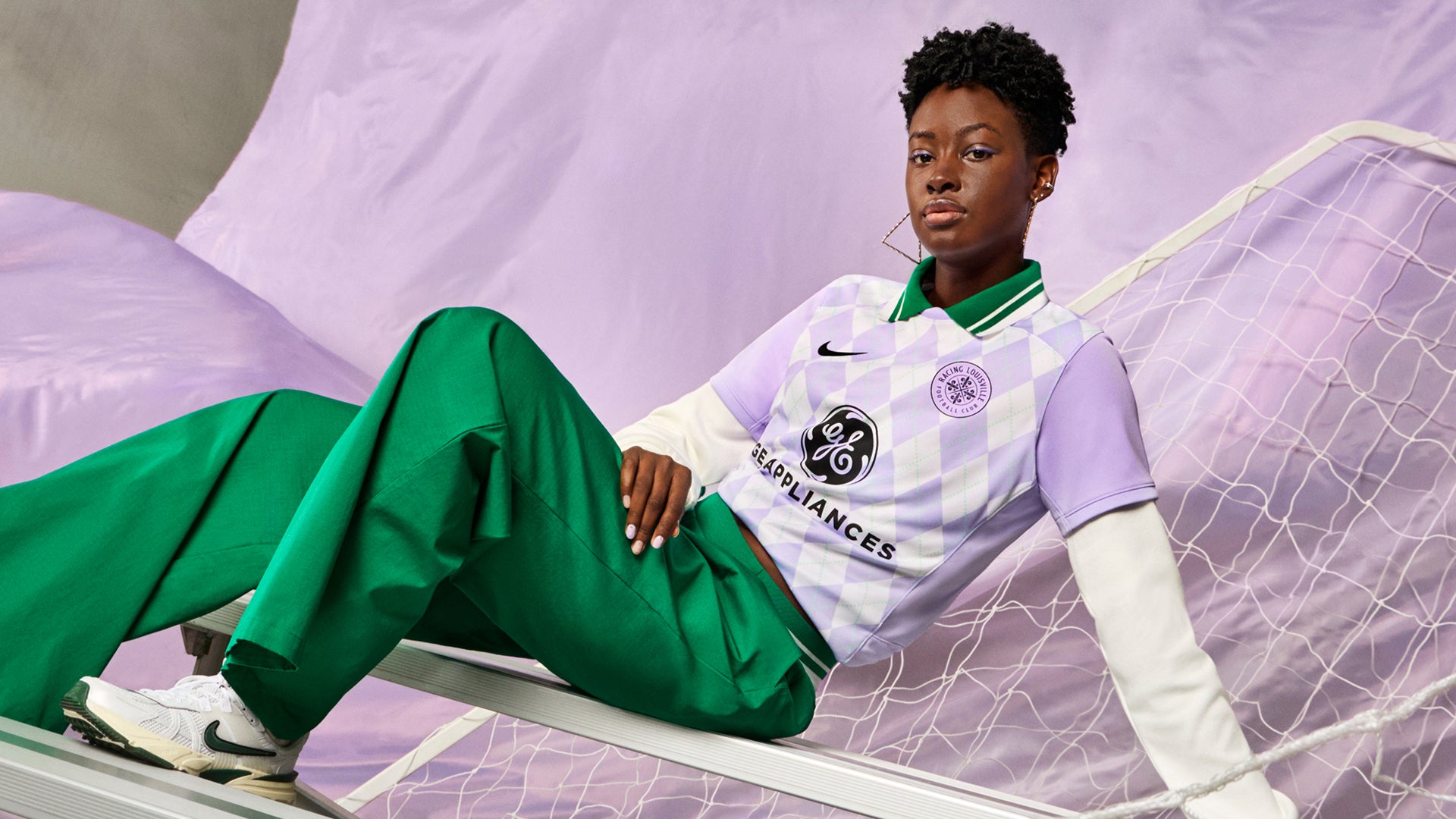 Cheer on your favorite NWSL team this year with this 2024 Racing Louisville FC women's replica jersey. This year's jersey features sponsors from GE Appliances, PNC, and Toyota. It also includes a Racing Louisville FC crest patch on the top left chest. This uniquely argyle printed jersey is just what you need to cheer on the Racing Louisville FC this year!